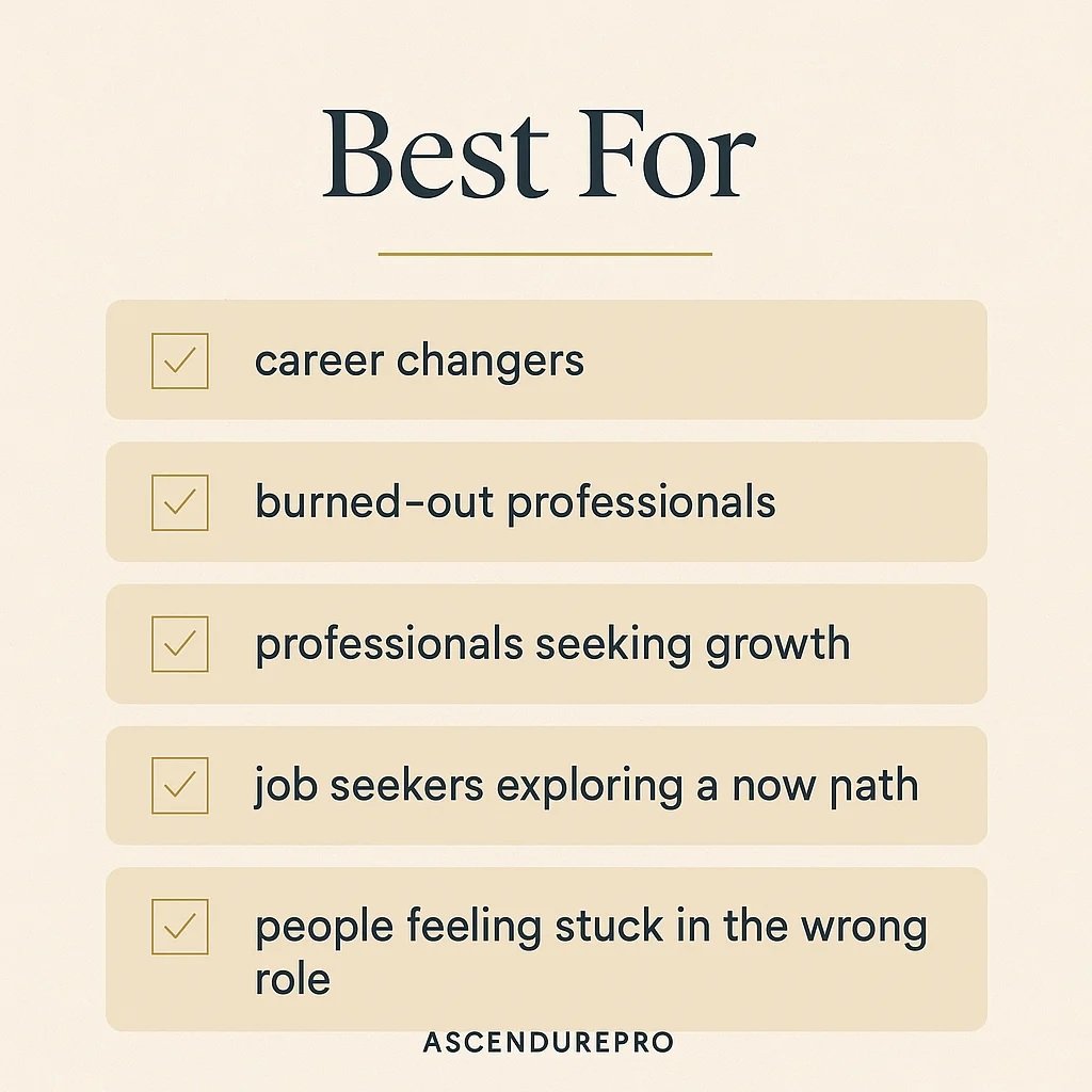 Whether you feel burned out, stuck, underutilized, or ready for a more aligned path, this workbook helps you move from confusion to a clear next-step plan.